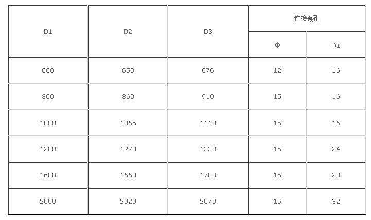 FDZ-(1)型產品連接尺寸表(部分規格)
