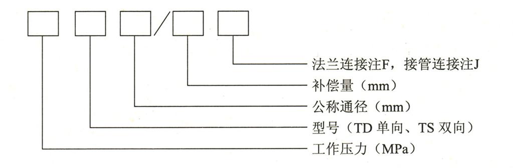 二、套筒式補(bǔ)償器/管式伸縮節(jié)型號(hào)示例: